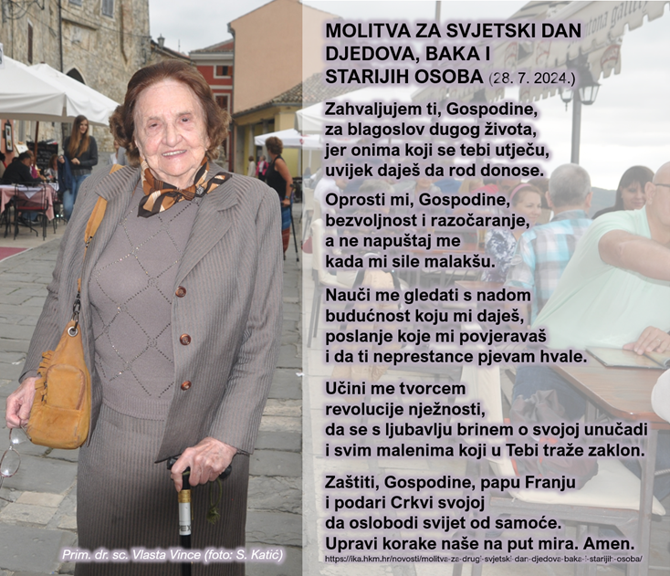 The most important thing is to stay with the elderly and appreciate their role even in old age. At the end, the Pope gave a blessing to the grandparents and the elderly, and asked them to pray for him. If we stay with the elderly and recognize their indispensable role in the family, society and the Church, we too will receive many gifts, many graces and many blessings! On this Fourth World Day dedicated to them, let’s not fail to show tenderness to grandparents and elderly people in our families, let’s visit those who have fallen in spirit and no longer hope that a different future is possible. Let’s contrast the selfish attitude that leads to rejection and loneliness with the open heart and joyful face of the one who has the courage to say: ‘I won’t leave you!’ and choose a different path. May my blessing, accompanied by prayers, reach all of you, dear grandparents and elderly people, and those who are close to you. Please don’t forget to pray for me, the Pope said.” ( www.mirovina.hr ) DT