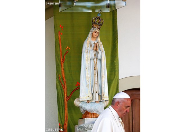 (Vatican Radio) Pope Francis prayed on Friday in the Little Chapel of the Apparitions in Fatima, entrusting himself, in union with his brothers and sisters, to Our Lady of Immaculate Heart. A golden rose was the personal gift he left at her feet.