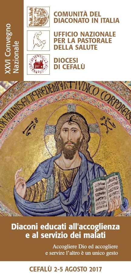 (Pino Grasso) «Diaconi educati all’ accoglienza e al servizio dei malati. Accogliere Dio ed accogliere e servire l’ altro è un unico gesto». È il tema del Convegno nazionale dei diaconi, giunto alla XXVI edizione che quest’ anno si tiene per la prima volta in Sicilia, a Cefalù (Pa) presso il Centro congressi di Torre Normanna di Altavilla Milicia, da oggi al 5 agosto. Prevista la partecipazione di oltre 300 diaconi, provenienti da ogni parte d’ Italia che tornano ad incontrarsi dopo il precedente appuntamento del 2015 a Campobasso.