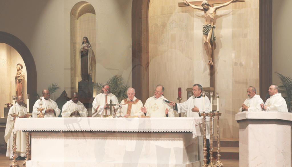 The Tampa Bay Guild of St. Philomena of the Catholic Medical Association held their annual White Mass for healthcare professionals in the Diocese of Saint Petersburg on Saturday, November 8, 2025, in Our Lady Queen of Angels Chapel at Christ the King Catholic Church in Tampa. Bishop Gregory Parkes concelebrated the White Mass with Guild Chaplain Father Paul Pecchie, pastor of St. Anthony the Abbot Parish in Brooksville, and Father Ralph D’Elia, priest secretary to the bishop and director of the Office of Episcopal Ceremonies. Two deacons also participated in the Mass – Deacon Frank Averill, M.D, J.D. and Deacon Paul Haber. Guild President Dr. John R. (Rob) Hamill, Jr., hosted a dinner event following the White Mass. Over 90 participants attended including spouses and medical students. The dinner’s speaker was Dr. Julio Gonzalez, M.D., J.D., a former Florida State Representative. His talk, entitled “The Role of Catholic Physicians in Restoring Right Order: What You Can Do,” was inspirational and very motivating as he encouraged attendees to boldly speak out the truth on healthcare matters and regarding the Catholic faith.