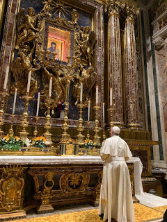 Questo pomeriggio, poco dopo le 16:00, Papa Francesco ha lasciato il Vaticano in forma privata e si è recato in visita alla Basilica di Santa Maria Maggiore, per rivolgere una preghiera alla Vergine, Salus Populi Romani, la cui icona è lì custodita e venerata. Successivamente, facendo un tratto di Via del Corso a piedi, come in pellegrinaggio, il Santo Padre ha raggiunto la chiesa di San Marcello al Corso, dove si trova il Crocifisso miracoloso che nel 1522 venne portato in processione per i quartieri della città perché finisse la “Grande Peste” a Roma.